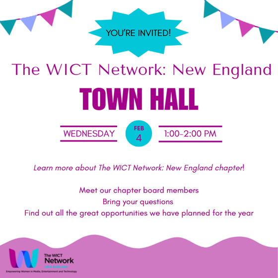 You're Invited to The WICT Network: New England Virtual Town Hall Wednesday, February 4, 2026 1:00 - 2:00 PM Meet our chapter board members, have your questions answered and find out all the great opportunities we have planned for the year. REGISTER HERE