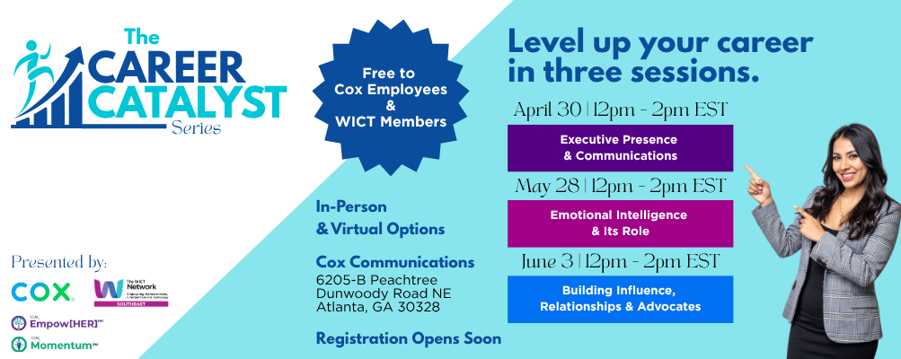 The Cox Empow[HER] and Momentum ERGs are proud to partner with The WICT Network: Southeast to present a dynamic three-part Career Catalyst Series designed to elevate professional growth at every stage.